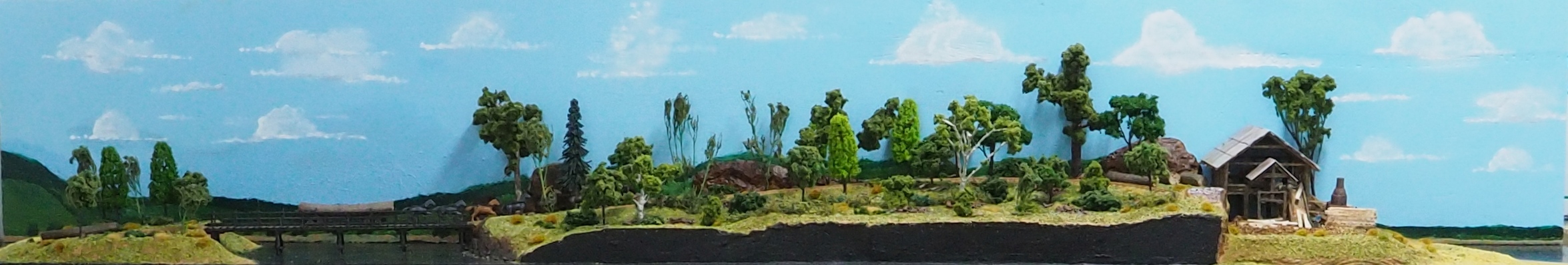 Constructed to support the mining of silica from Pattimores Lagoon and rail transport over 8 klms across Narrawallee inlet to the Bannister Head wharf for shipping silica to Newcastle and Port Kembla to make high temperature refractory bricks for steel works.. The diorama covers 2 large floor sections, thus 2 panorama images were needed. (NB: – with the display bending around corners….it was a photographic challenge!).